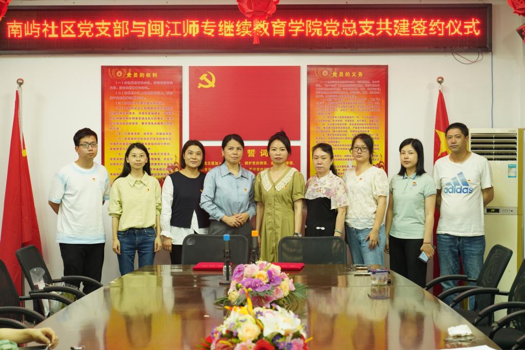 继续教育学院党总支副书记兰浈、南屿社区党支部书记陈洁代表双方签订了协议。双方将按照“优势互补、共联共建、共谋发展”的原则,充分发挥各自优势,推动组织联建、活动互联、资源共享、经验共鉴,为双方推进党建创新,推动业务发展,合作共赢注入新的活力。