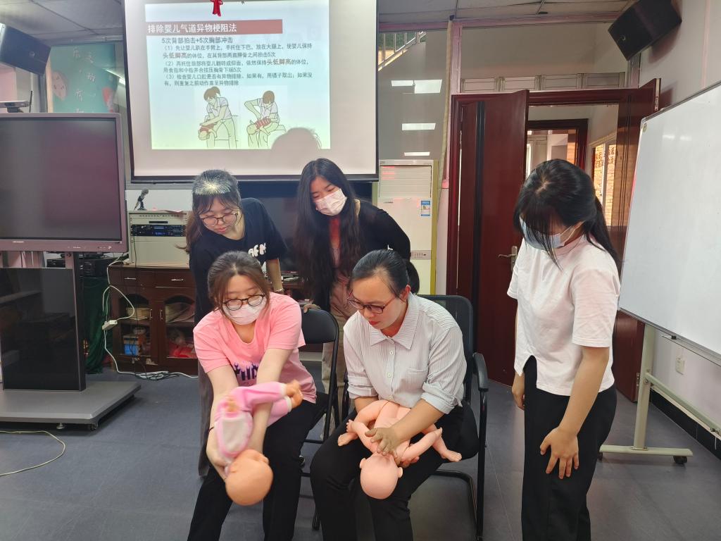 培训中,学前教育学院教师郑剑萍用通俗易懂的语言阐述,深入讲解烫伤、中毒、虫咬伤、气道异物、海姆立克急救法、心肺复苏等应急救护知识,并指导学员练习“海姆立克”、“心肺复苏”等紧急救援处理方法。学员们认真聆听、积极互动,学习氛围十分浓厚。