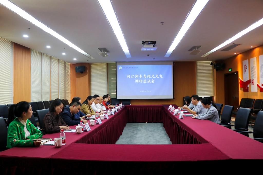 在福建建兆元光电有限公司,陈震东董事长对林旻副书记一行表示热烈欢迎,并介绍了公司发展历程、生产规模、人才情况等情况,双方就人才培养、人才保障、校企共建等方面进行了深入探讨。