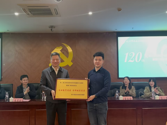 会议期间,校友代表给母校赠送了120周年校庆牌匾,全体与会人员进行合影留念。