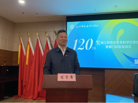 大会在校歌《走进闽江师专》中拉开帷幕。陈荣生书记向厦门校友会授旗并对校友会的成立致以热烈的祝贺,他围绕校史沿革、办学特色、战略目标、发展举措与发展进程等方面作报告,与校友们分享学校取得的可喜成就。