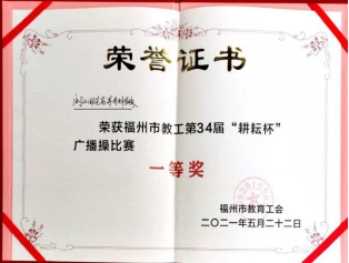 2021年5月22日,大赢家体育app下载工会组织教工代表队参加福州市教工第34届“耕耘杯”“永远跟党走”广播操比赛。运动员们团结一致,齐心协力,奋勇拼搏,以89.07的高分在54支中小学大中专院校代表队中脱颖而出,获得一等奖。