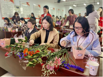 在本次花艺鉴赏体验活动中,女教工学习到插花知识,感受美、欣赏美、创造美,融洽了同事之间的情谊,增强了凝聚力,达到了“愉悦心情,快乐工作”的目的。