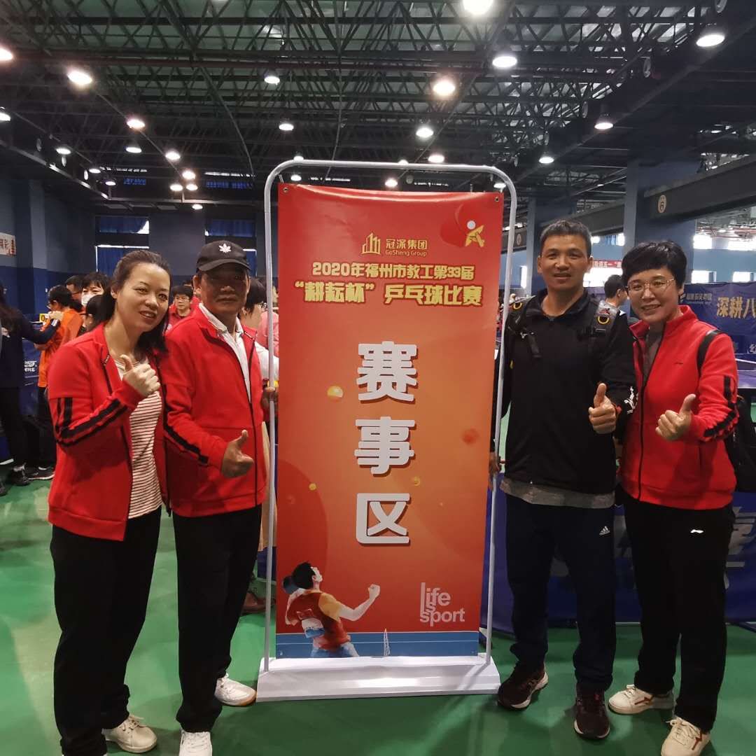 为进一步鼓励广大教职工积极参与健身活动,培育健康文明、团结向上的校园文化新风尚,大赢家体育app下载工会组建教工运动队参加福州市教育工会分别于2020年10月31日在福州工人文化宫、12月5日在福州三中晋安校区开展福州市教工第33届“耕耘杯”乒乓球比赛和趣味运动会 。校工会林旻副校长、林锦芯副主席带领16个教职员工参加了“耕耘杯”运动会。