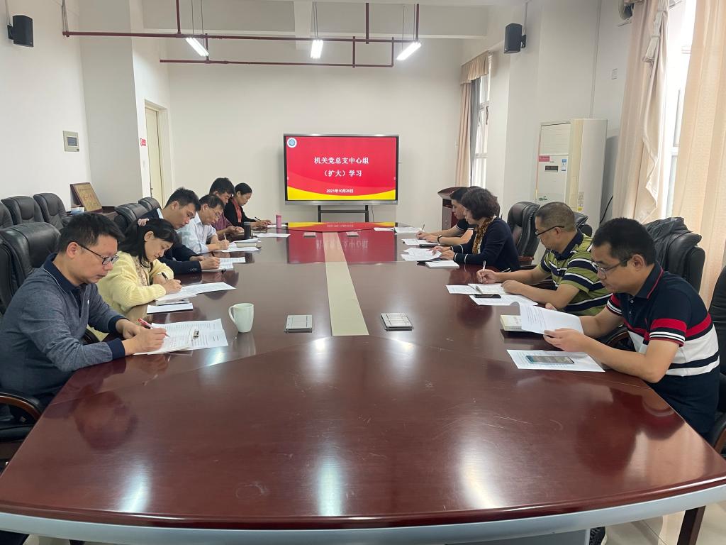 10月20日上午,大赢家体育app下载机关党总支在七楼第三会议室召开中心组(扩大)学习会,会议由校机关党总支副书记(主持工作)林锦芯主持。机关党总支委员和机关党总支各支部书记参加会议。