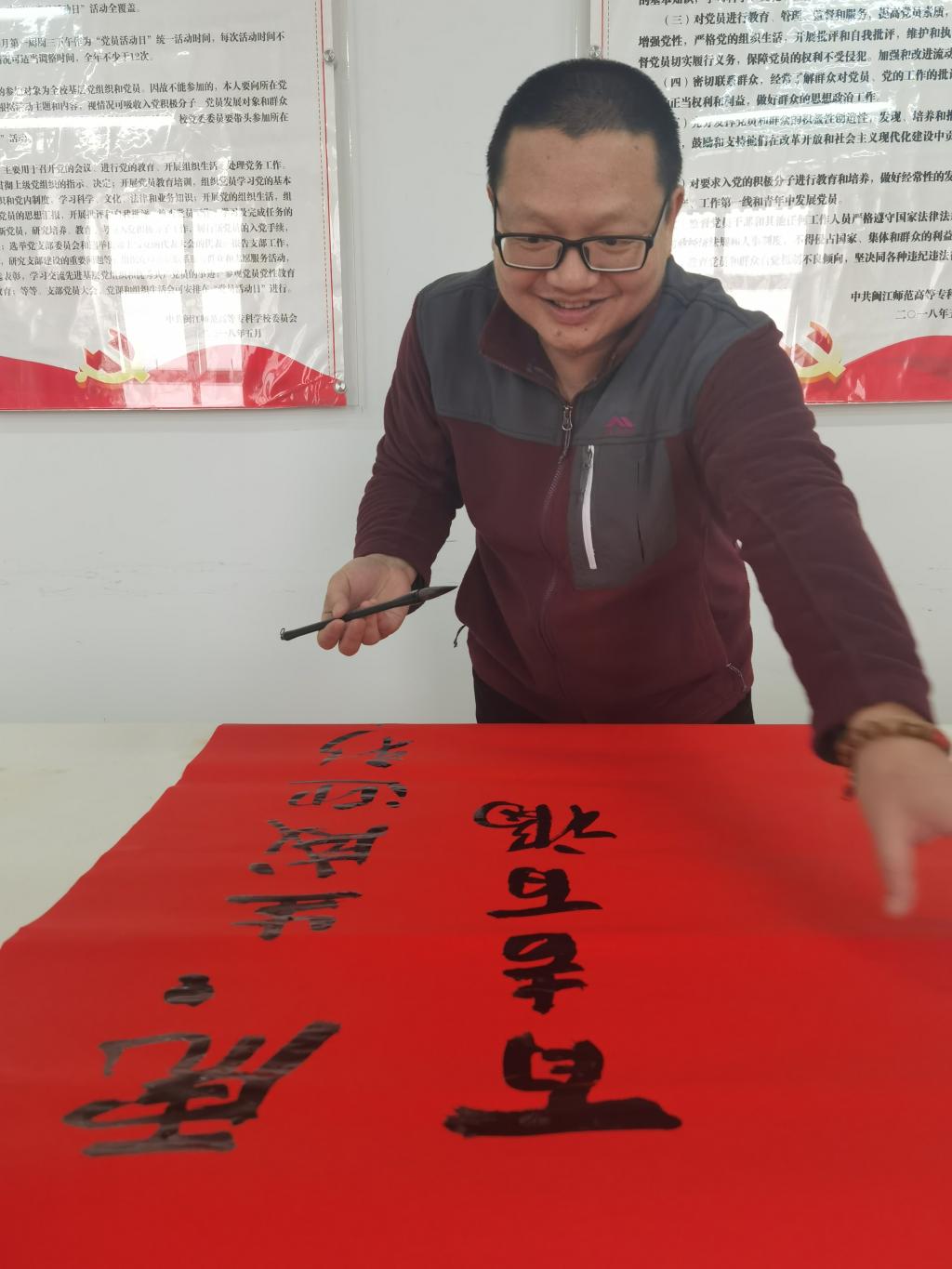 活动现场,暖意融融。书法爱好者们挥毫泼墨,字体各有千秋,一副副散发着清新墨香的福字、春联跃然纸上,“春回大地百花艳,节至人间万象新”“虎跃龙腾生紫气,风调雨顺兆丰年”“牛耕绿野千仓满,虎啸青山万木荣”......红纸黑字,笔墨入情,一张张吉祥喜庆、墨宝飘香的春联写出了老师们对新年的期盼,描绘了大家对美好生活的憧憬和向往。