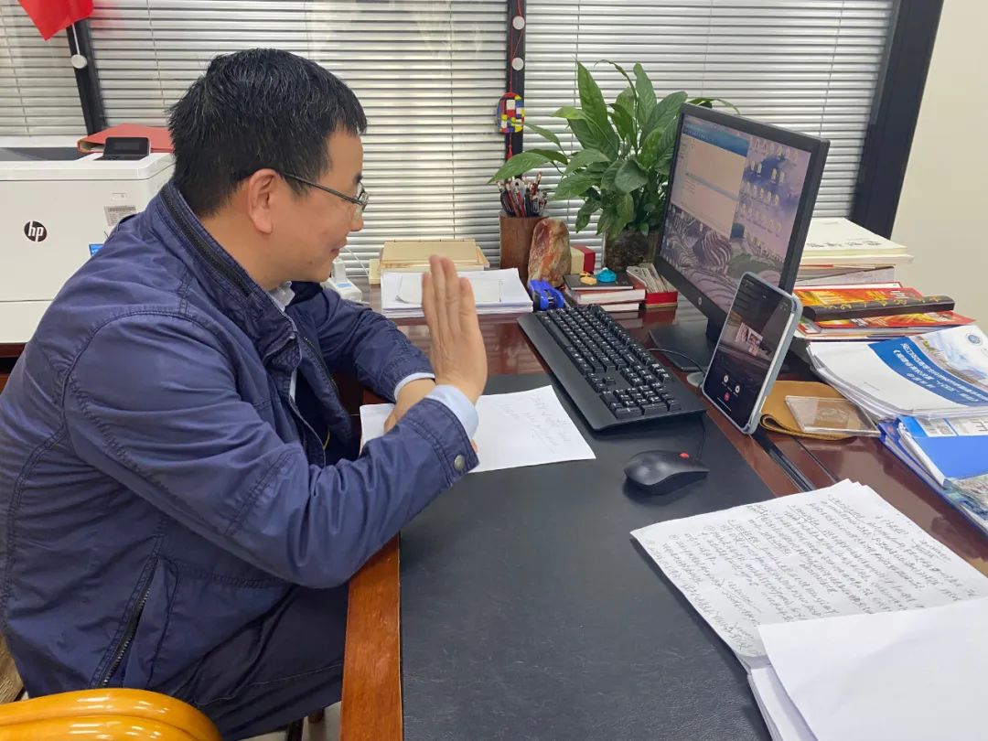 3月21日上午组织开展学生处党支部“疫”路同行,关爱在云端活动,校领导与学生“云谈话”活动,副校长谢敏峰和党支部书记郭静静与在校隔离学生相约“云端”,以特殊的方式进行交流。