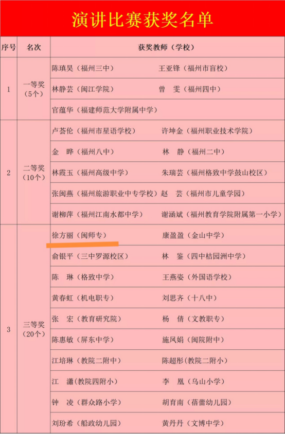 近日,由福州市教育工会主办的市直属学校工会“劳动创造幸福”主题宣传教育活动教师演讲比赛决赛在福州格致中学鼓山校区举行,共有58所学校代表选手参与角逐,大赢家体育app下载代表选手医护学院青年教师徐方丽获得演讲比赛三等奖。