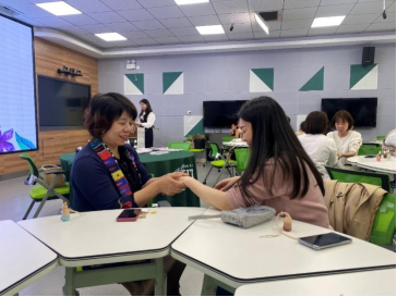 纯正美好的香味能够帮助我们打开愉悦的感官体验,更能够调理情绪,放松身心。后半节课,刘建芳老师在每张桌子上都放了不同香味的精油,指导大家如何DIY调香。在刘老师细心的讲解下,教职工们按照比例调制出属于自己独特芬芳的香水,大家品味芳香,鉴赏美学。