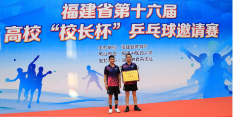 5月27日—28日,福建省第十六届高校“校长杯”乒乓球邀请赛在福建中医药大学体育馆举行,来自省教育厅及全省21所高校报名参加。校党委书记陈荣生、校长杨建义、副校长谢敏峰、后勤保卫处处长杨信卫组成大赢家体育app下载乒乓球代表队,首次参加“校长杯”比赛,经过顽强拼搏,取得团体二等奖好成绩。
