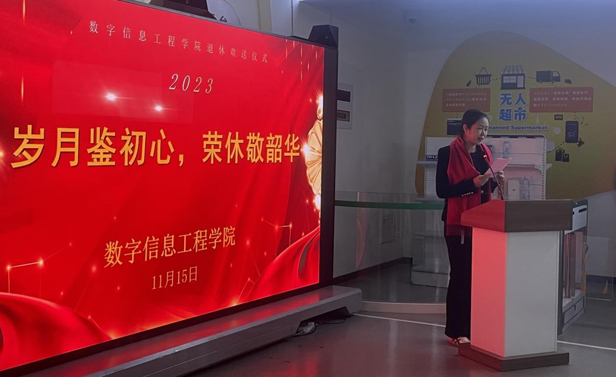 11月15日,数字信息工程学院在仓山校区隆重举行“岁月鉴初心,荣休敬韶华”退休教师荣休欢送座谈会。院领导班子、各教研室主任、教师代表及荣休教师曹红参加了本次座谈会。会议由数信学院工会副主席王凤姣主持。