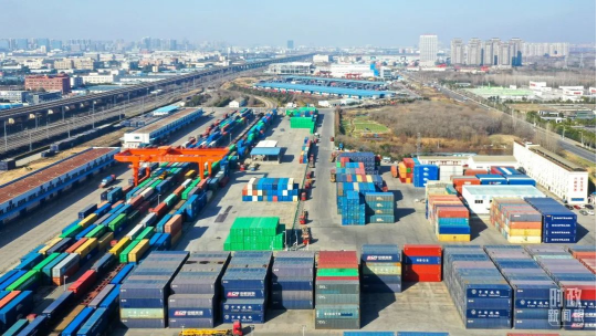 △合肥春节期间铁路货运“不打烊”,中欧班列货运集装箱集结待发。