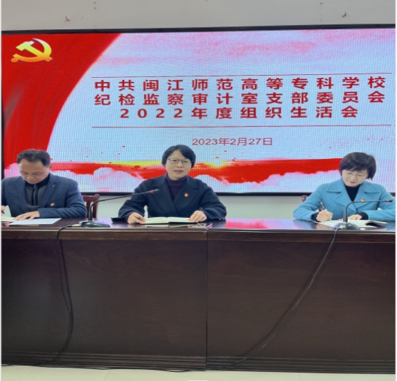 为深入学习贯彻党的二十大精神,坚持不懈用习近平新时代中国特色社会主义思想凝心铸魂,2月27日,纪检监察审计室党支部召开了2022年度组织生活会,并开展民主评议党员。校党委委员、纪委书记陈群同志以普通党员身份参加会议。