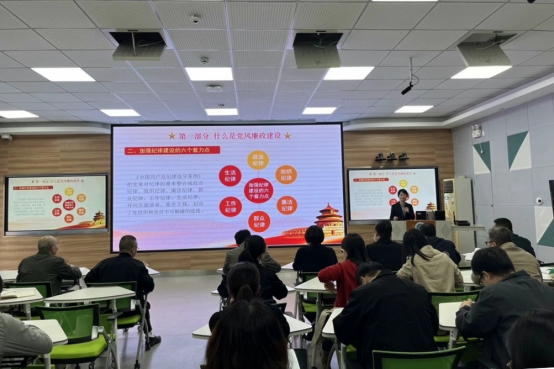 陈群书记以党风廉政建设关键词解读为切入点,结合习近平总书记关于党风廉政建设重要论述,深入浅出地阐述了什么是党风廉政建设、为什么要加强高校党风廉政建设和如何加强高校党风廉政建设,并通过自己多年纪检监察工作经验和办案积累的大量鲜活的案例进行“以案释纪”,强调二级党组织要切实担负起党风廉政建设的主体责任,支部纪检委员要充分发挥探头哨岗作用,共同营造风清气正的育人环境。