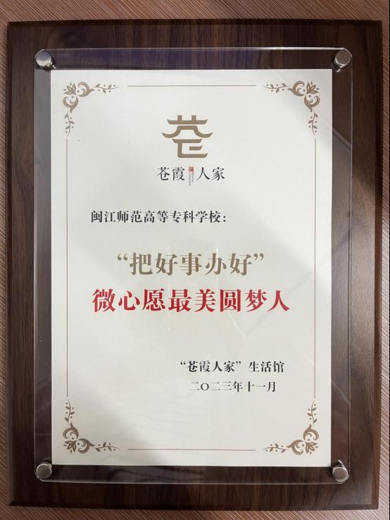 11月,校党委委员、纪委书记陈群带领校纪委委员、纪检监察审计室党支部党员赴苍霞人家生活馆实地开展“循足迹、悟思想、铸忠魂、担使命”主题教育研学活动,深入学习习近平总书记领导推动福州棚屋区改造的创新理念和生动实践,深刻体悟习近平总书记以人民为中心的发展思想、真挚情怀和“马上就办、真抓实干”的务实作风。在现场学习中,了解到苍霞街道新城社区注重打造“一老一小”服务体系,纪检监察审计室党支部主动认领党建微心愿,结合学校心理咨询专业优势,联合校人文与管理学院为社区儿童开展心理团辅志愿活动。“苍霞人家”生活馆回赠学校“‘把好事办好’微心愿最美圆梦人”荣誉证书。