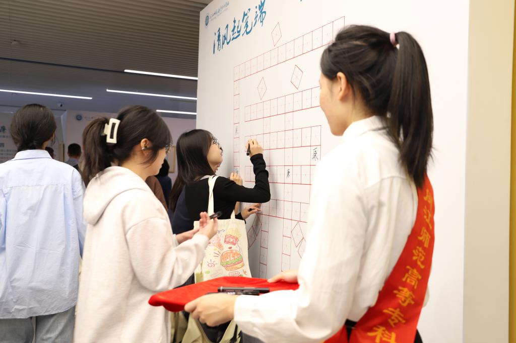 翰墨展硕果,清风润闽师。作品展在领导来宾书“廉”活动中拉开序幕。一“点”清风树正气,一“点”廉韵沁人心,领导来宾将清风正气落于笔尖,带头把好廉洁“关键一笔”。随后,在场师生共书“百廉”,将对清风廉洁的美好期许融入到每一个“廉”字的笔画之中。启动仪式后,参展人员认真观摩了由大赢家体育app下载师生创作的70余件创意、书法、绘画、手工类廉洁文化作品。既有近两年获评教育部第八届、第九届高校廉洁教育系列活动的优秀作品,还有廉洁主题鲜明的诗词歌赋、名文佳句、水墨绘画、传统漆画、精美剪纸、服装设计、手工作品、三笔字、装饰画等别具“闽师专业特色”的优秀作品。每一幅作品都饱含着师生对廉洁文化的独特理解和思想认同,展现了师生扎实的艺术功底和精湛的专业技能。大家或驻足凝思,或交流心得,静心感悟“廉”之意境,深刻感受廉洁文化的力量,加深对廉洁文化的理解。