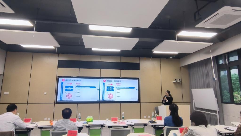 说课程环节,教师围绕课程定位与课程目标、师资队伍、教学资源、教学组织与实施、课程评价与考核、教学效果与反馈、教学特色与亮点等内容进行了详细解说。