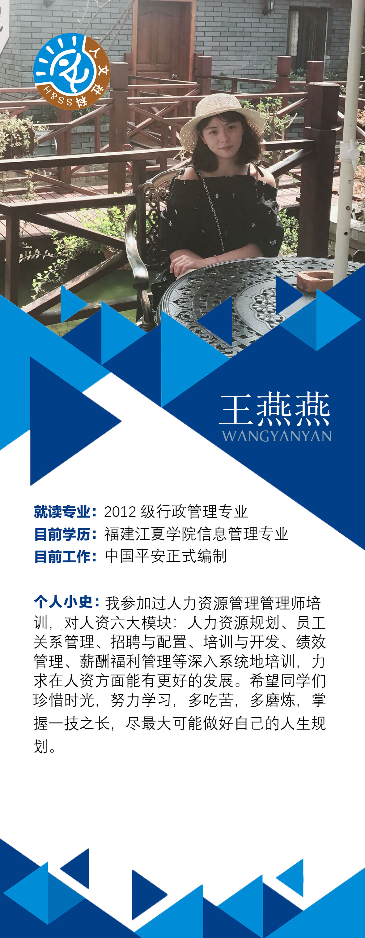 王红 2014级行政管理 当前学历:闽江学院本科 目前工作:加拿大硕士研究生在读