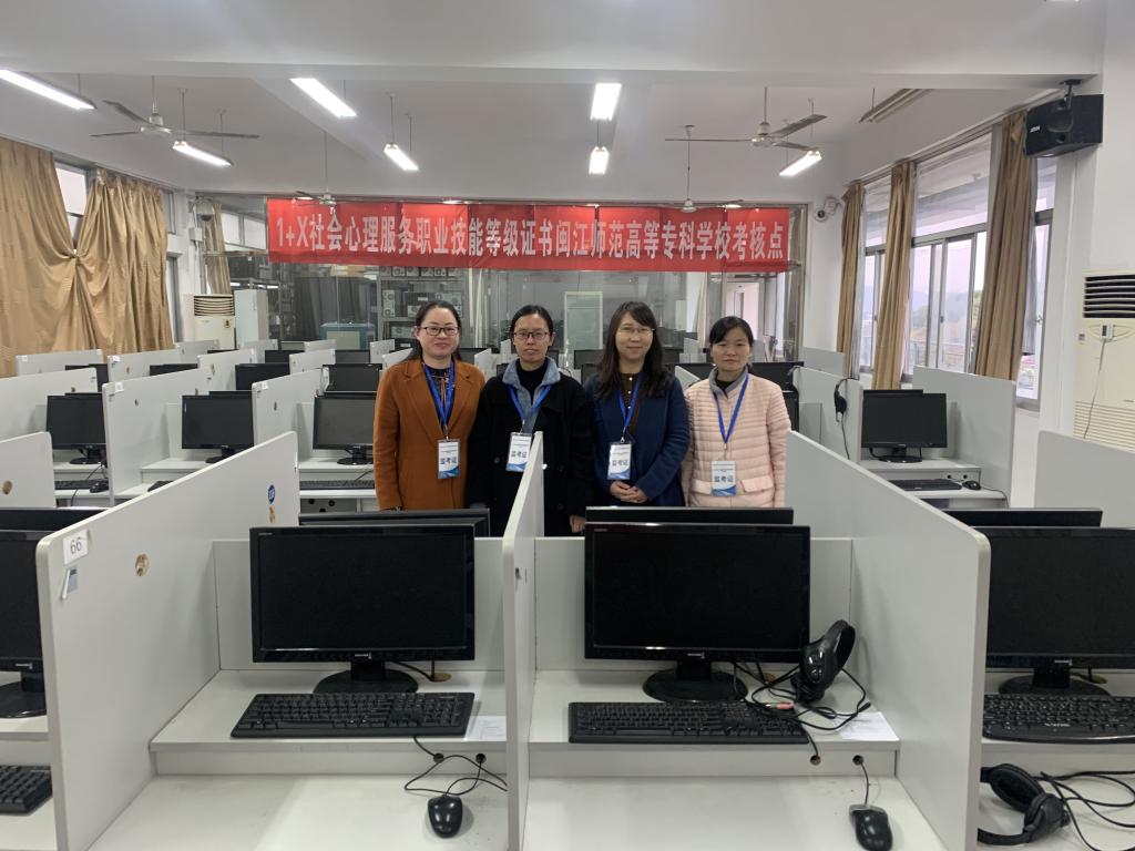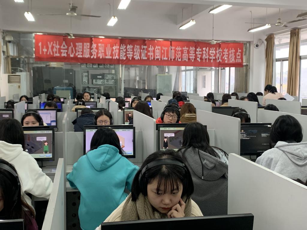 2021年12月25日,人文社科系在大赢家体育app下载仓山校区4号教学楼602机房举行了1+X“社会心理服务”职业技能等级证书(中级)全国统考。有80名考生参加本次考试,其中心理咨询专业的学生70名、社会工作专业的学生10名。人文社科系心理教研室谢姗姗主任,心理专业教师赖红梅、白丽、张一全担任本次考务工作
