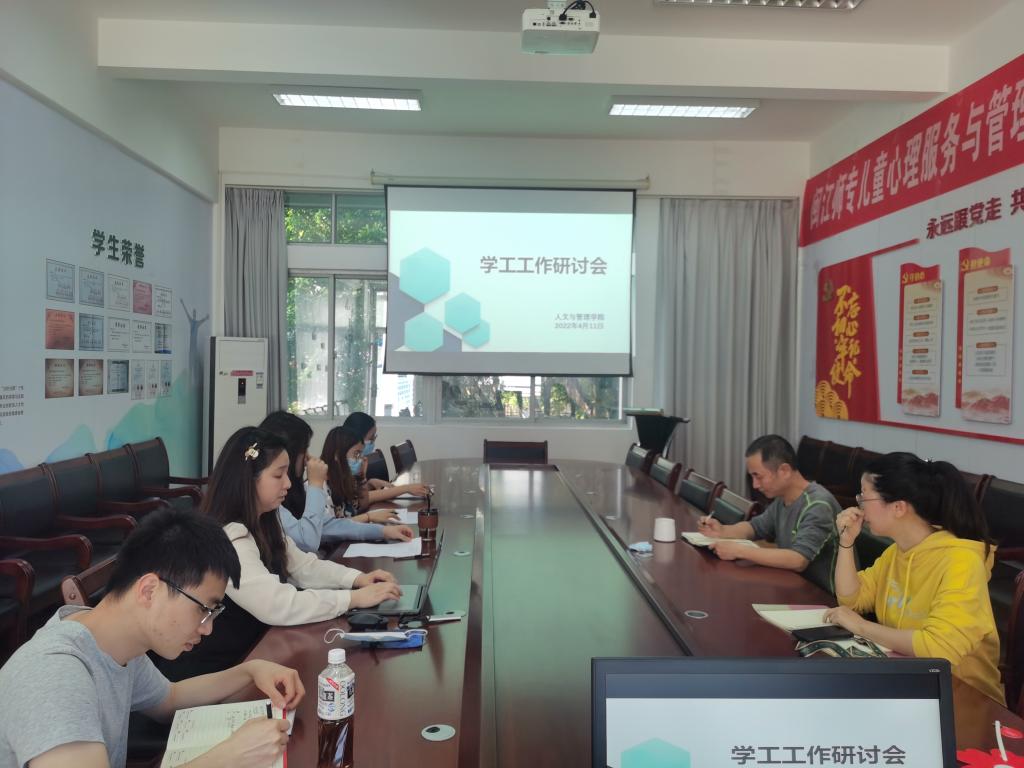 4月11日,人文与管理学院学工团队在3号楼会议室召开本月学工工作研讨会。会议由人文与管理学院团委书记黄益群主持,院党总支书记林朝阳以及全体辅导员出席本次会议。