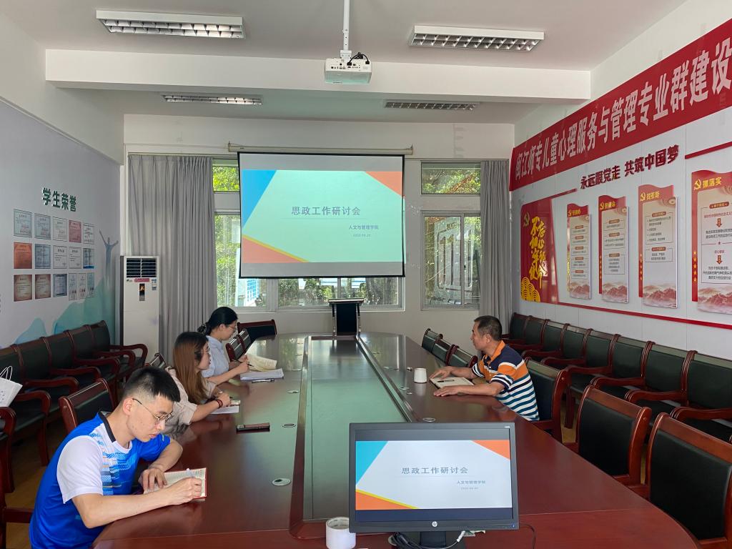 2022年6月20日,人文与管理学院学工团队在3号楼会议室召开本月学工工作研讨会。会议由人文与管理学院团委书记黄益群主持,院党总支书记林朝阳,部分学院辅导员出席本次会议,福清校区王颖秋、周海英老师以线上形式参与会议。