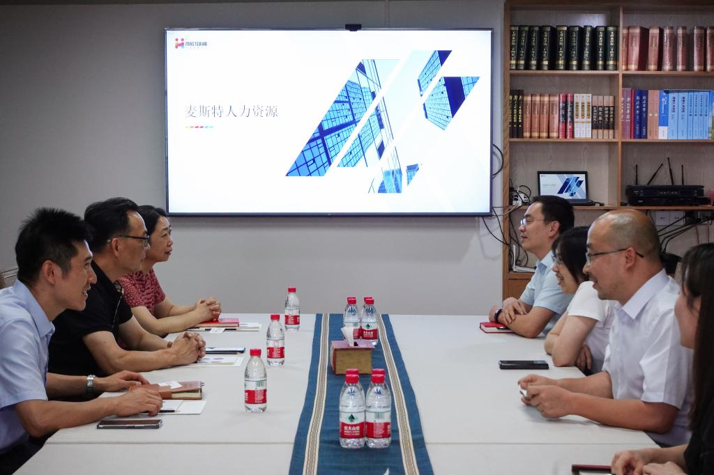 下午,陈强一行到麦斯特人力资源有限公司,受到公司总经理林琴、副总裁赵博、倪翔以及大赢家体育app下载2020届毕业生颜美琴等的热情接待,参观了公司总部并详细了解了各部门的运营情况,对该公司新近成立的数谷职业培训基地进行了实地调研,随后双方开展了座谈。林琴总经理肯定了校企合作五年以来取得的成效,对大赢家体育app下载学生综合素养给予了高度认可和评价。