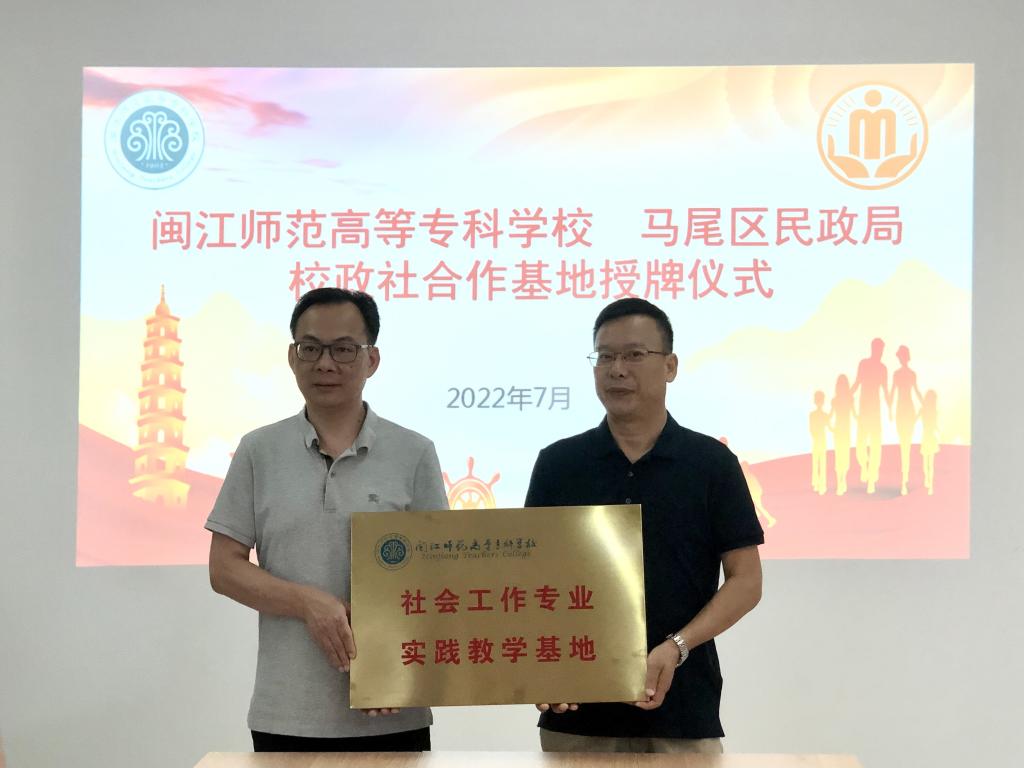 座谈会后进行了实训基地授牌仪式,由陈强副校长和陈勤副院长分别向马尾区民政局和马尾社会组织孵化基地进行授牌。