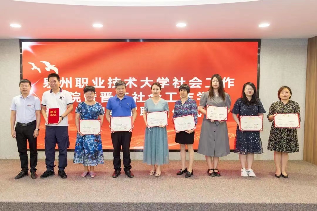 2022年7月8日上午,由泉州职业技术大学、晋江市民政局、晋江市社会工作协会联合发起创办的泉州职业技术大学社会工作学院暨晋江社会工作学院成立仪式在泉州职业技术大学晋江校区隆重举行。我院社会工作教师张潇颖、何昕柔受邀出席,并获聘任为“特聘理论专家”。