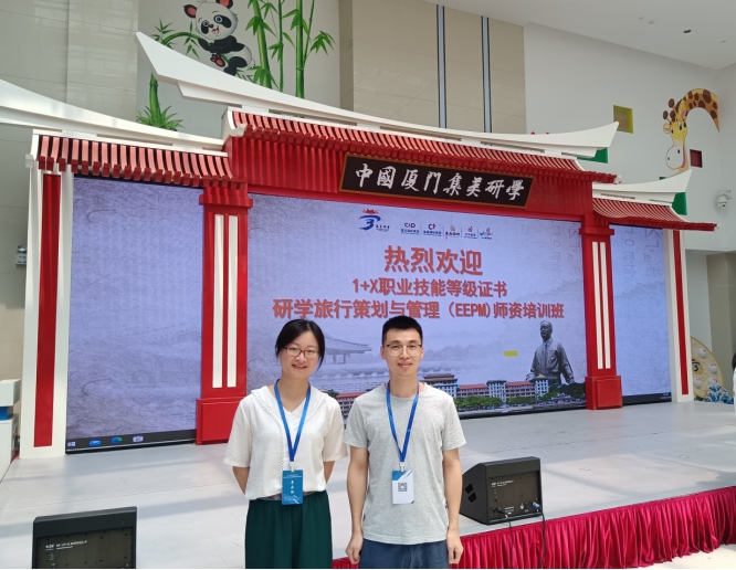 为贯彻落实《国家职业教育改革实施方案》文件精神,积极推进职业教育教学改革和内涵建设,助力“双师型”师资团队建设,7月26日至8月1日,人文与管理学院刘少艾副院长、叶懿蛟老师赴厦门参加了由亲子猫(北京)国际教育科技有限公司主办的研学旅行策划与管理(EEPM)职业技能等级证书(中级)师资培训暨考评员培训。