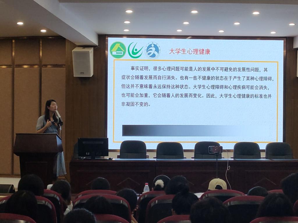讲座中,张宝英老师首先向全体学员宣传了大学生青春健康活动的理念,在与新生的互动交流中,共同探讨了成长中的生死瞬间话题,并邀请学员分享话题经历中的生命感悟。结合大家的分享,张宝英老师讲述敬畏生命、感恩他人的重要性,并引导学员在日常学习生活中学会赞美与感谢。之后,张宝英老师引入心理健康的专题,阐述开展大学生心理健康教育活动的意义,表示心理问题是人发展中不可避免的发展性问题,强调大学生心理健康标准并非恒固不变的,并教导学员察觉自身心理状态,在遇到心理问题时,辨析其心理问题等级,尝试多种积极的方式需求帮助。