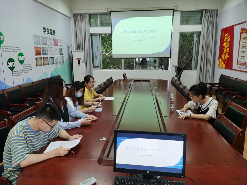 为做好近期学院各项学生评奖评优评先的工作,10月6日,人文与管理学院召开10月学生工作例会,会议由人文与管理学院团委书记黄益群主持,仓山校区全体辅导员参与了本次会议。