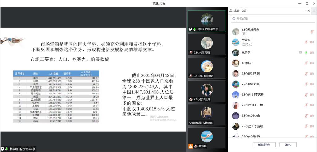 2022年11月9日,人文与管理学院党总支书记林朝阳为22心理健康教育与22心理咨询的新生讲授题为“建设统一大市场 畅通全国大循环”的形势与政策课。受疫情影响,本次课程通过线上平台进行。