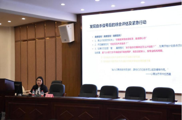 图7:林斐老师介绍发现自杀信号后的综合评估及紧急行动的相关措施