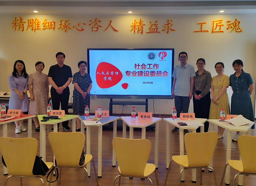 为结合新时期社会工作发展要求,提高大赢家体育app下载社会工作专业办学水平,改善专业与课程体系构架,提高人才专业知识素养和技术能力。人文与管理学院社会工作专业于2023年6月21日召开专业建设委员会,出席此次会议的有福建省社会工作联合会副会长徐若兰、福州市社会工作联合会会长高洪霖、马尾社会组织孵化基地负责人夏晋城、福州市鼓东街道庆城社区党委书记卓宇枫、福州福悦社会工作发展中心项目主管林钦燕,以及社会工作专业负责人余晶、专业教师张潇颖。此次会议由余晶老师主持。
