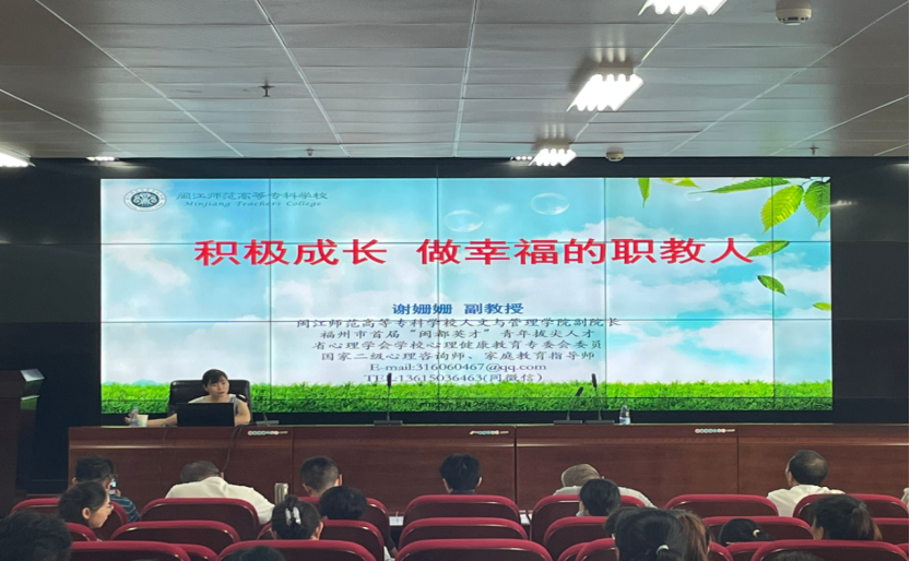 2023年8月28日上午,福州财政金融职专为了有效缓解教师心理压力,提高教师心理健康素质和增强职业幸福感,特邀大赢家体育app下载人文与管理学院谢姗姗副教授为全体教师开设《积极成长做幸福的职教人》的心理健康讲座。