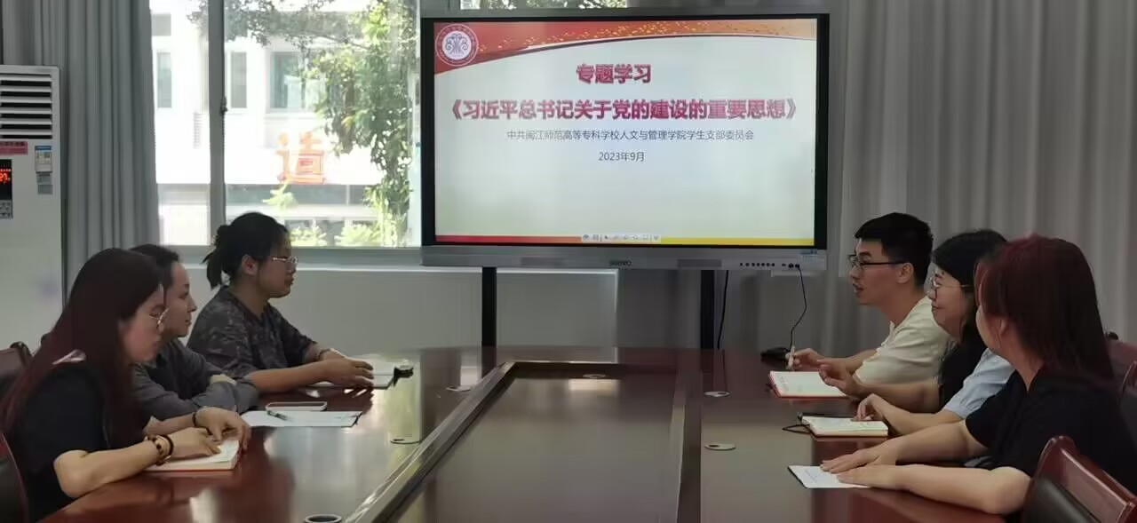 2023年9月20日下午,人文与管理学院党总支所属各支部于仓山校区开展主题教育专题学习。本次学习的内容为:学习习近平总书记关于党的建设的重要思想,围绕学思想强党性、忠诚为党护党、全力兴党强党进行1次学习研讨。本次学习由各支部书记分别主持,各支部教师党员参加。