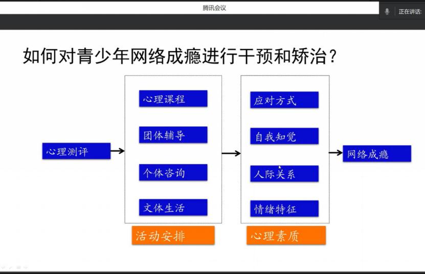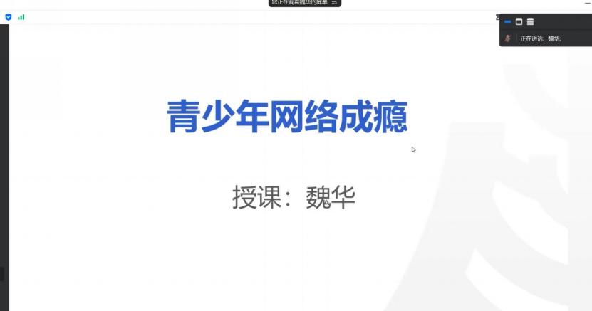 网络讲座培训会上,邀请了青岛大学师范学院心理学系教师,硕士生导师,青岛大学特聘教授魏华为老师们主讲了“青少年网络成瘾”。魏华教授详细向大家主要介绍了青少年网络成瘾的形成机制和干预重点。讲座结束后,参与培训的教师就青少年网络成瘾的干预重点中具体操作细节等疑问进行网络提问,老师们进行了充分的交流与讨论。