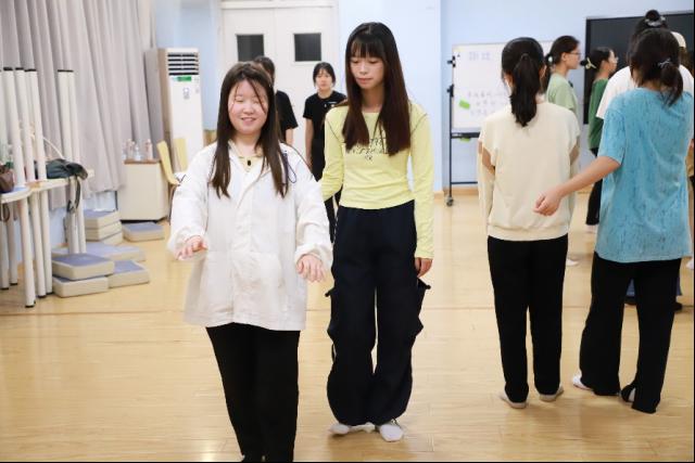 图1 李大荣老师带领同学们感受身体