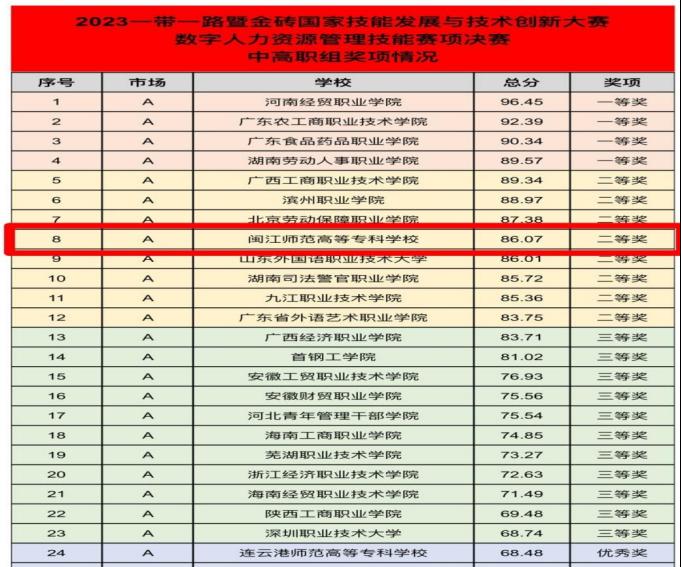 11月18日,2023一带一路暨金砖国家技能发展与技术创新大赛数字人力资源管理技能赛项(高职组)全国总决赛成功举办。本次大赛由金砖国家技能发展与技术创新大赛组委会、一带一路暨金砖国家技能发展国际联盟主办,北京劳动保障职业学院、云南财经大学、云南省人力资源管理学会承办,上海踏瑞科技有限公司作为协办单位。我院行政管理专业教师陈清芬、游燕指导的吴婷婷、陈钰琦、林颖组成的团队,通过一整天的角逐比拼,从全国72支代表队中脱颖而出,荣获全国总决赛二等奖。