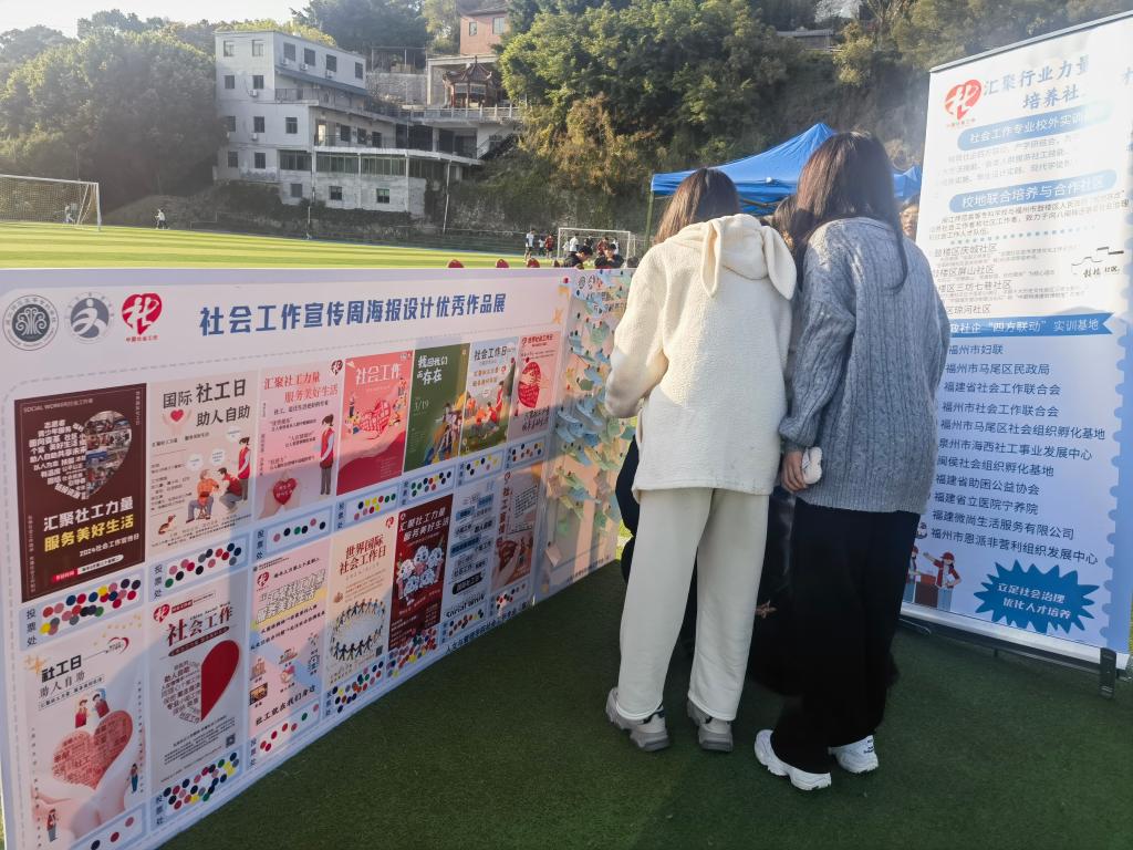 社工宣传游园活动在仓山校区操场举行。首先,活动现场设置了多个互动体验区,以科普社工知识,游戏闯关挑战等方式,开展趣味游园活动的过程中,生动地向师生展示社会工作在社会治理和服务基层美好生活中的重要作用,也促进学校师生对社工专业的认知和理解。其次,同学们通过互相帮助完成游戏挑战,通过游戏启示同学们社会工作“助人自助”等价值理念,也生动形象的向老师与同学们展现了社会工作的内涵及实践意义。在活动现场,同学们和老师都积极主动的在“锦囊交换墙”贴上自己可以“帮助他人的一件小事”,来以此促进人际间的交流合作以及非正式支持网络的建立,这也秉持着社会工作的价值理念,激励社会工作者践行人民服务、助人自助的美好品德。最后,全校师生们观摩“社工宣传海报设计大赛”优秀作品并投票,纷纷在签名墙写下对社工行业的美好祝福,藉此期盼社会工作行业更上一层楼。
