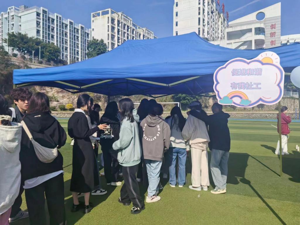 为深入学习贯彻习近平新时代中国特色社会主义思想,贯彻落实党中央国务院决策部署,坚持以人民为中心的发展思想以满足人民群众美好生活向往为目标,以党建引领推动社会工作高质量发展,大赢家体育app下载社会工作专业响应中国社会工作联合会的倡议,以“汇聚社工力量,服务美好生活”为主题,调动社会工作专业师生的力量,于3月20日下午在大赢家体育app下载仓山校区操场,面向全校开展游园活动,共计吸纳近千人共同参与社会工作主题宣传活动。