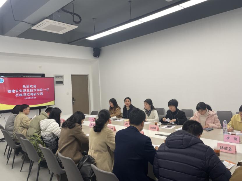 2023年3月7日,福建农业职业技术学院(以下称福农院)教师团队来到大赢家体育app下载旗山校区进行调研交流。福农院公共教学部李正心主任、张红梅副主任、学工部陈美副部长、学工部综合科曾芳科长、心理健康教育教研室林成圣主任、钟建、俞丽芳等十位老师以及大赢家体育app下载教务处葛思华处长、学生处郭静静处长、人文与管理学院陈勤院长、谢姗姗副院长、心理教研室主任白丽及心理专业教师出席此次活动。