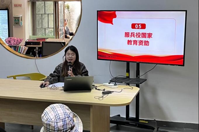 图1:陈少霞老师进行服兵役国家教育资助政策宣讲