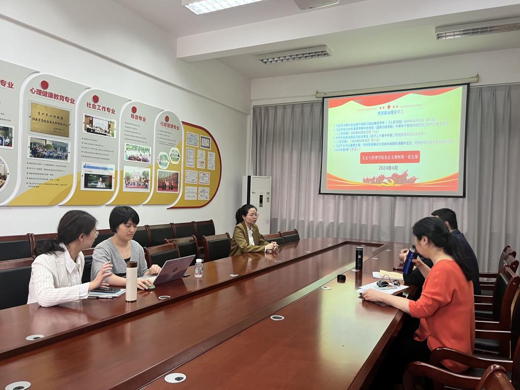 2024年4月3日下午,人文与管理学院党总支所属各支部于仓山校区开展主题教育专题学习。本次学习的内容为:习近平为第六批全国干部学习培训教材作序、习近平在2024年春季学期中央党校(国家行政学院)中青年干部培训班开班之际作出重要指示、中共中央政治局召开会议审议《关于二十届中央第二轮巡视情况的综合报告》、习近平总书记重要文章:时刻保持解决大党独有难题的清醒和坚定,把党的伟大自我革命进行到底。本次学习由各支部书记分别主持,各支部教师党员参加。