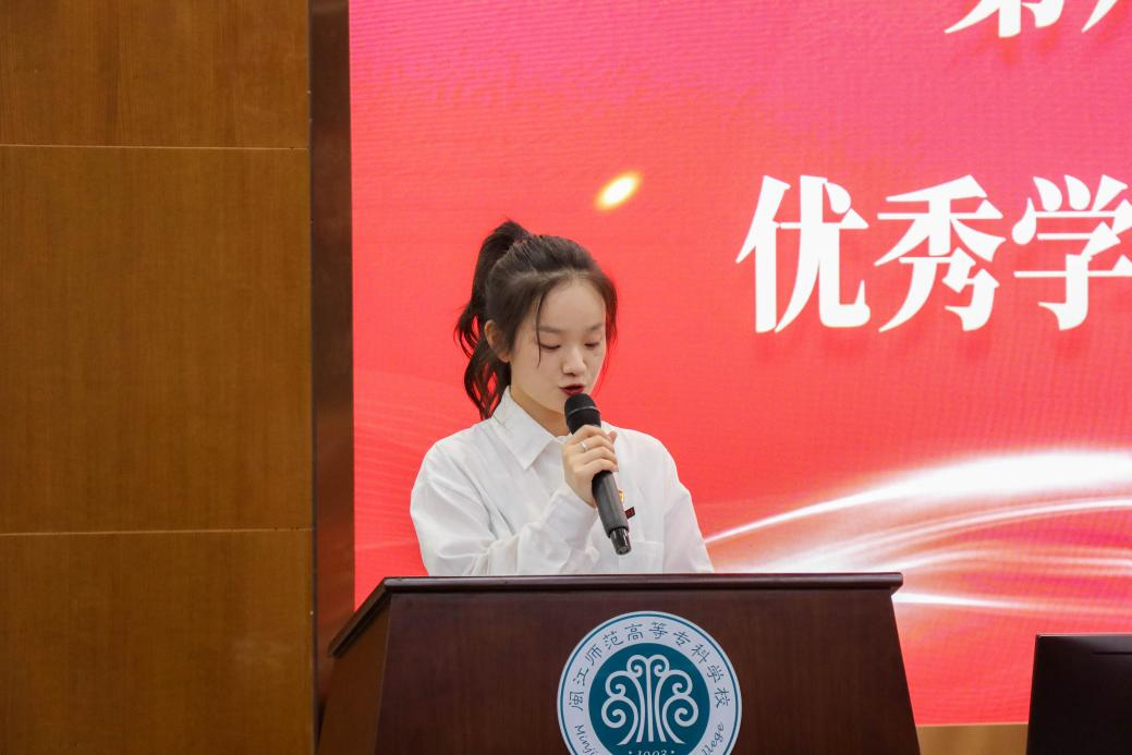 颁奖仪式过后,优秀学生代表杨思涵同学上台发言。她号召我院学子要点亮青春理想,树立正确“青年观”,与时俱进,把握世界发展规律,用发展的眼光看问题。最后,全体参会人员共同合唱《光荣啊,中国共青团》,并在新团员的庄严宣誓中圆满结束。
