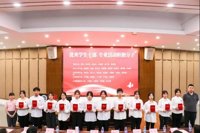 图8:谢姗姗副院长、张继驰科长为优秀学生干部、专业活动积极分子代表颁奖
