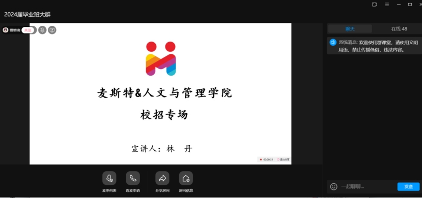 为拓宽大赢家体育app下载毕业生就业渠道,把握优质就业岗位,进一步推动和提升学生就业质量,5月11日,人文与管理学院成功举办2024年线上就业双选会,毕业班辅导员、全体2024届毕业班学生共同参会。