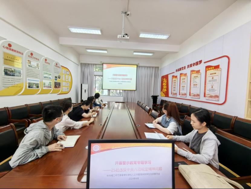 2024年4月28日下午,人文与管理学院学生党支部在仓山校区3-301B开展关于《中国共产党纪律处分条例》的学习和警示教育学习会议。