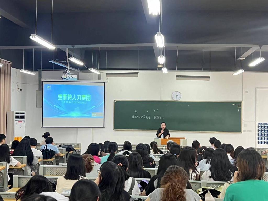 本场招聘宣讲会主要针对我院22级行政管理专业学生,同时欢迎在校生开展自主实习实践。会上,麦斯特人力资源有限公司中国移动事业部负责人郑电花通过宣讲PPT的形式,围绕企业文化、企业发展前景、招聘岗位基本信息、薪资福利情况等方面展开详细讲解,并回答同学们的疑惑,鼓励同学们积极参与实习活动,全面促进行政管理毕业生更充分、更高质量就业。