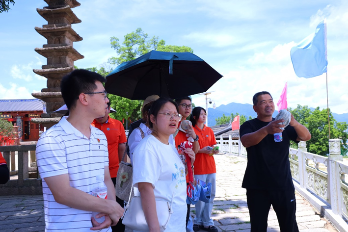 纪委委员向实践队成员介绍镇国宝塔地理位置